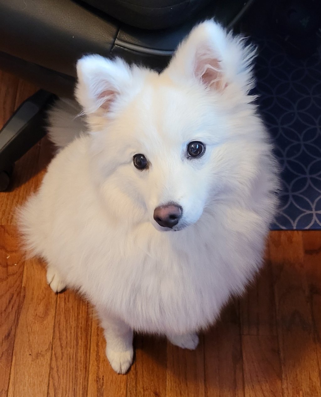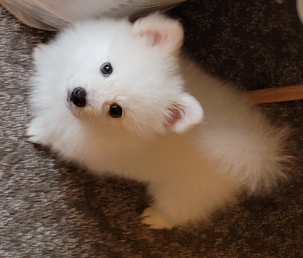 Bigger than a Pomeranian but smaller than American Eskimo