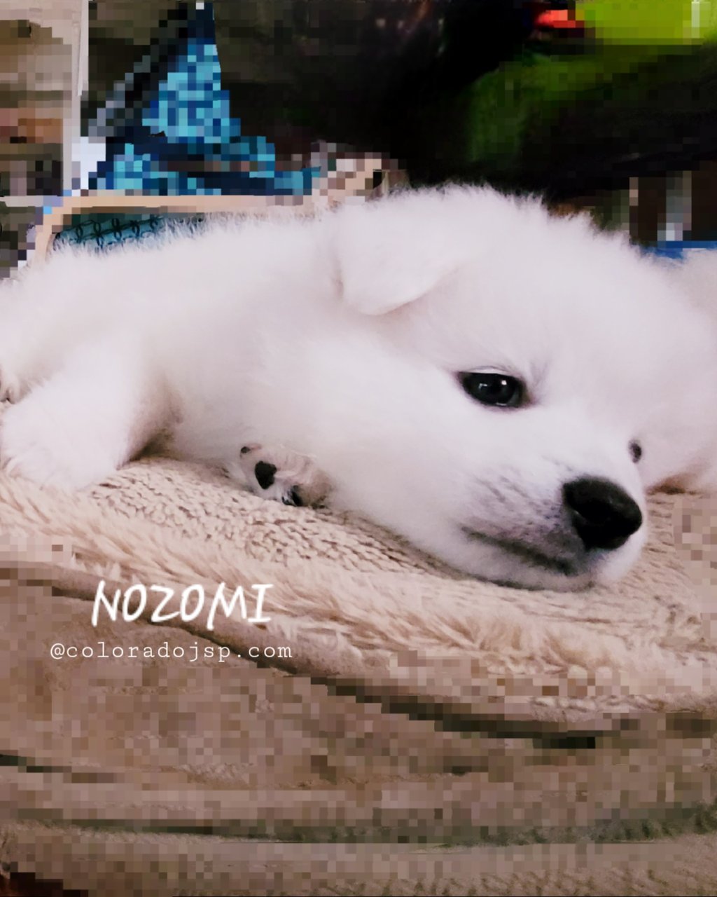 Meet Nozomi, the observant but happy girl. With a name that means "hope" or "longing for love", she is a larger size pup with a personality that's anything but shy. Nozomi is a social butterfly who loves people and enjoys being around them, often showing affection with wagging tails and snuggles. Her friendly demeanor makes her a great companion for families or individuals looking for a loyal friend.