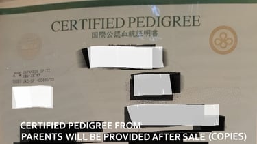 We're committed to responsible practices and have obtained Japan Kennel Club certification to guarantee the quality and authenticity of our dogs. Although these dogs came directly from Japan, they have the same guarantee and quality that JKC try to promote.